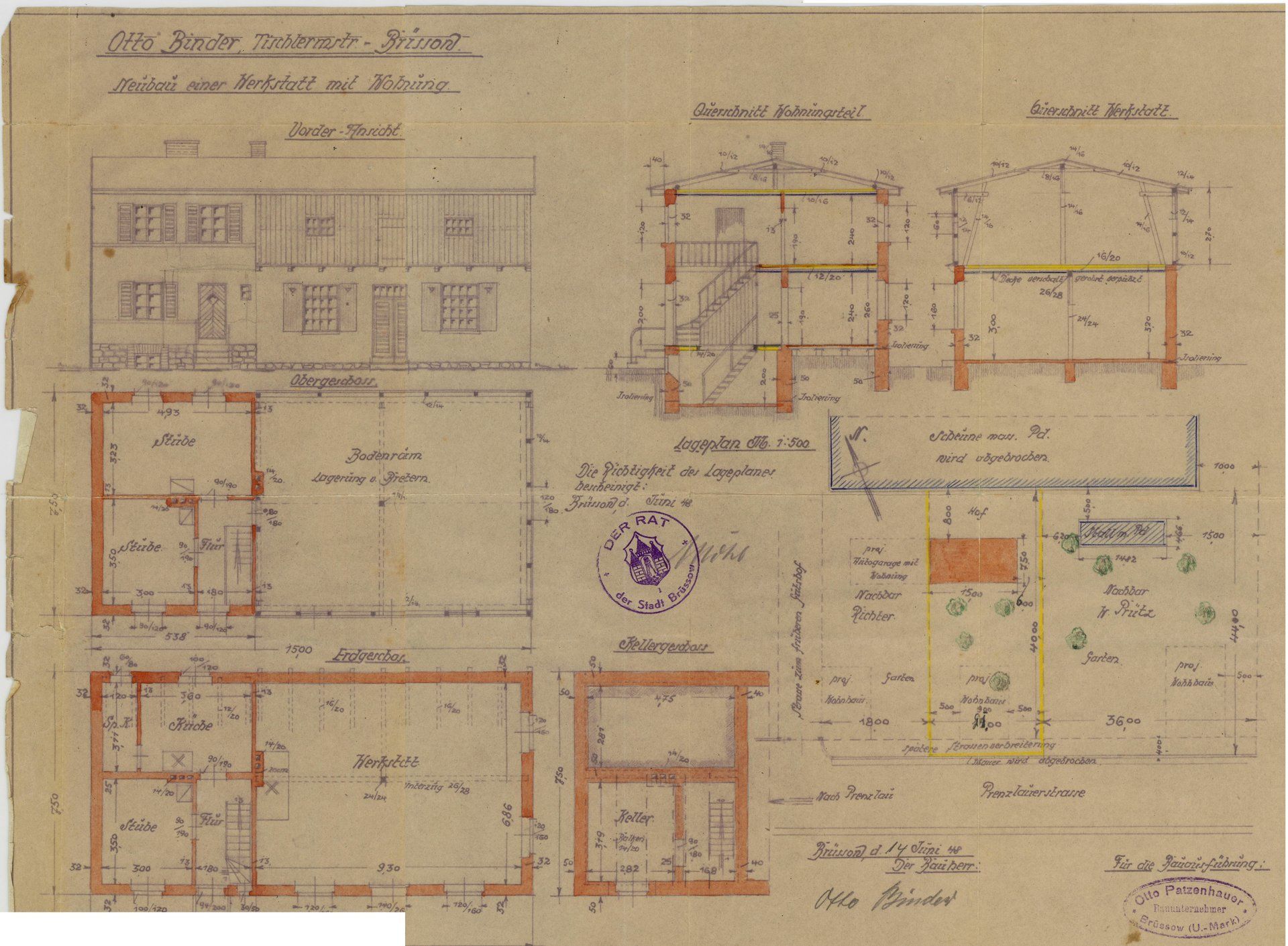 Der Name unseres Ferienhauses stammt vom Tischlermeister Otto Binder. Er war der Eigentümer des Hauses und ließ sich im Jahre 1948 die Errichtung genehmigen. Hierzu finden Sie im Anschluss ein historisches Dokument mit alten Skizzen und Ansichten des damaligen Hauses. Nach Fertigstellung wurde die rechte Hälfte des Hauses (heute Ferienwohnung 2) als Tischlerwerkstatt genutzt. Bei den jetzigen Umbauarbeiten haben wir eine historische Firmentafel gefunden. Diese wurde in der Ferienwohnung 2 angebracht.